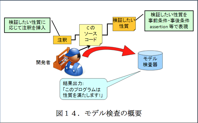 モデル検査(Model Checking)プログラムの取り得る実行状態を探索することでプログラムの性質を