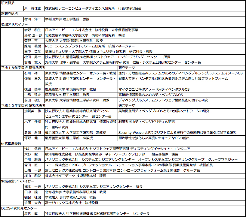 「実用化を目指した組込みシステム用ディペンダブル・オペレーティングシステム」(DEOSプロジェクト)は科学技術振興機構の戦略的創造研究推進事業CRESTの研究領域のひとつです。